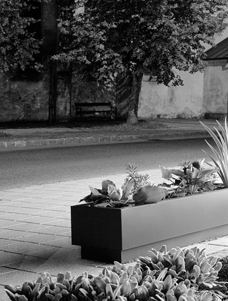 Elegant planter with pure design and universal usage. Steel structure and steel casing treated zinc coating and powder coating.