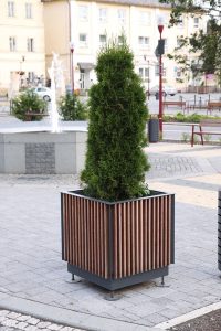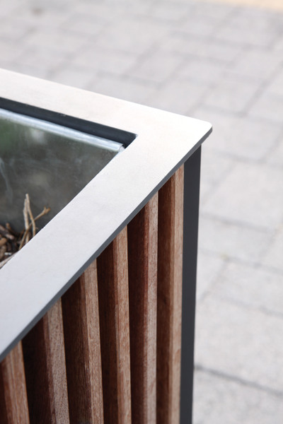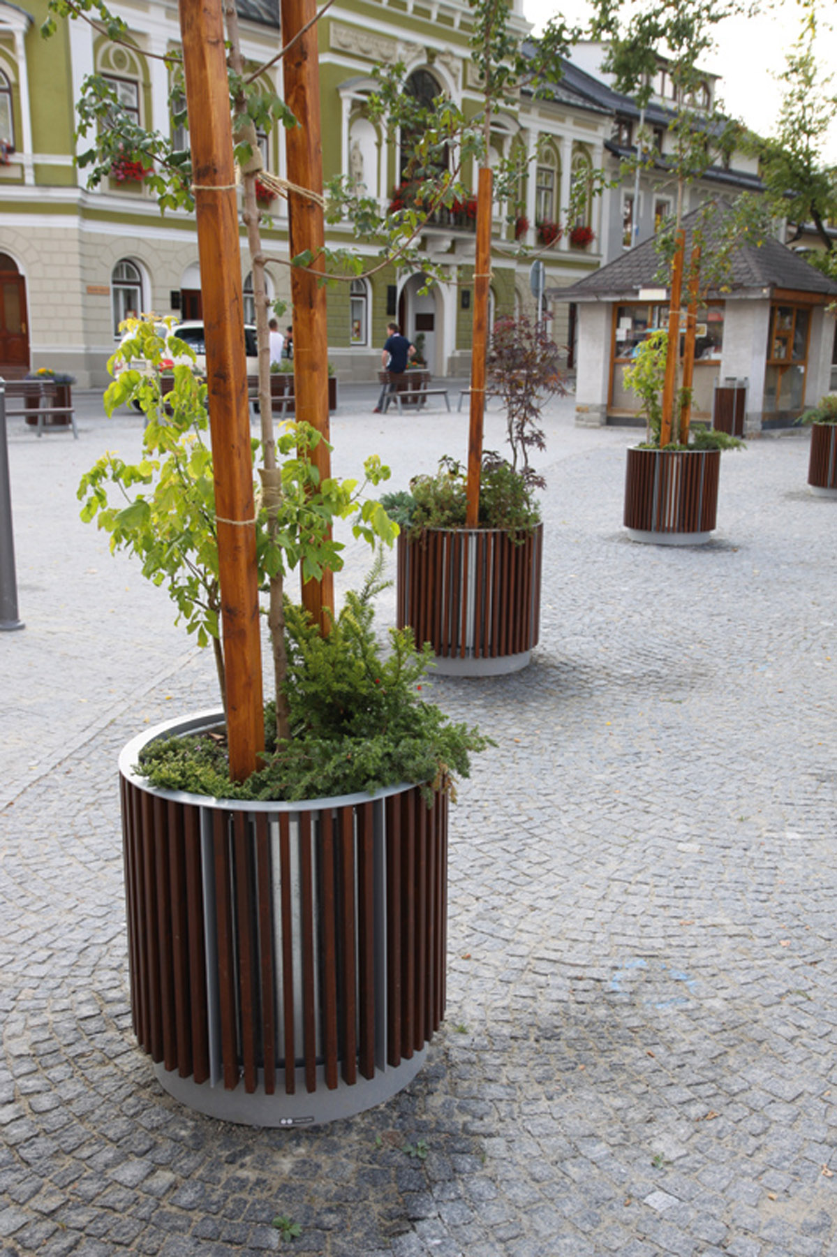Model with wooden lamella cladding available as well. Liner made of steel treated with exposed zinc coating. Firmly fixed.