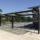 The shelters are made of galvanized and powder coated steel structure, tempered glass walls with safety serigraphy and safety glass roof panels. There is integrated drain which is led through the column.